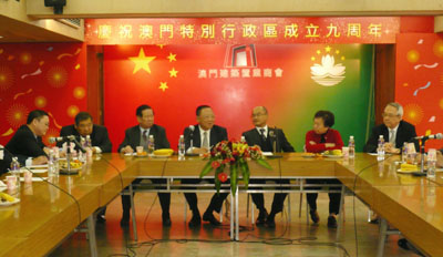 澳門建築置業商會日前在該會禮堂舉行“慶祝特區成立九周年座談會”,座談會由理事長劉永誠主持,出席者讚同回歸至今,澳門特區所走過的九年是卓有成效的,就特區政府自回歸以來各項政策所取得的成就及有待改善的地方,發表意見及提出建議,共同為特區及建築置業之持續繁榮發展出謀獻策。