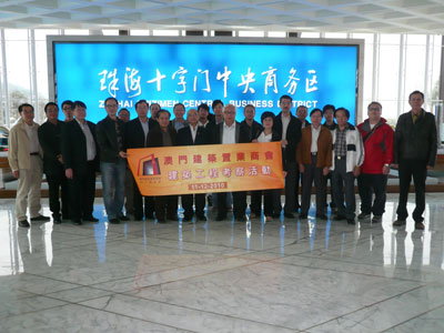 澳門建築置業商會一行三十人就建築、置業之新發展趨勢組織參觀、考察活動。十二月十一日,商會理事長劉永誠擔任領隊、何榮標及麥文新任副領隊,率領交流團參觀珠海新大型樓房建築,過程中,我們參觀樓房室內設計外,還參觀了綠化環境,環保設施、會所設備及停車場等整體設計及規劃,雙方互相交流管理方面議題,體現了鄰近珠海地區發展非常迅速,市民對居住環境要求比以往大大提高,十年、廿年的珠海已變化很大。