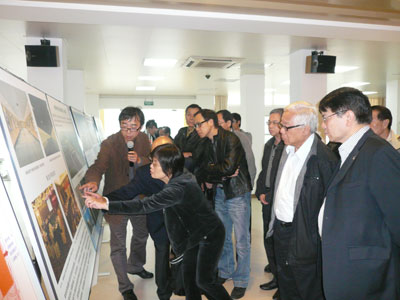 隨後,到達橫琴-澳門大學校園地盤參觀,團員與澳門特區政府建設發展辦公室代表及南粵集團代表在地盤辦公室會面及交流,建設辦代表講解了大學的地基建造時所遇到的困難如何解決,並介紹了大學整體設計概念,將來的管理與運作方式如何等,與團員作了長時間的交流討論,理事長劉永誠感謝建設辦代表對是次活動的安排工作,眾團員在交流會後合照。