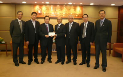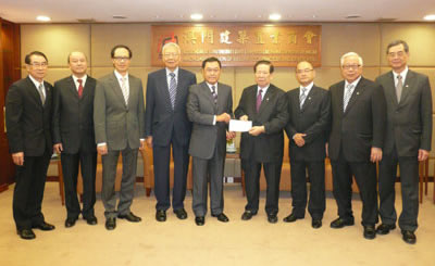 分別捐助同善堂善款三萬元及贊助公益金百萬行兩萬元,莫均益副會長、劉永誠理事長、梁竟成、麥文新副理事長及李發權常務理事代表商會出席遞交善款及接待工作。
