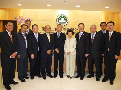 八月九日 澳門房地產聯合商會吳在權會長及畢明永遠會長帶同成員到訪商會,就房地產市場近況,及將於立法會討論之<城規法>及<房地產中介人>行政法規等相關內容進行討論。